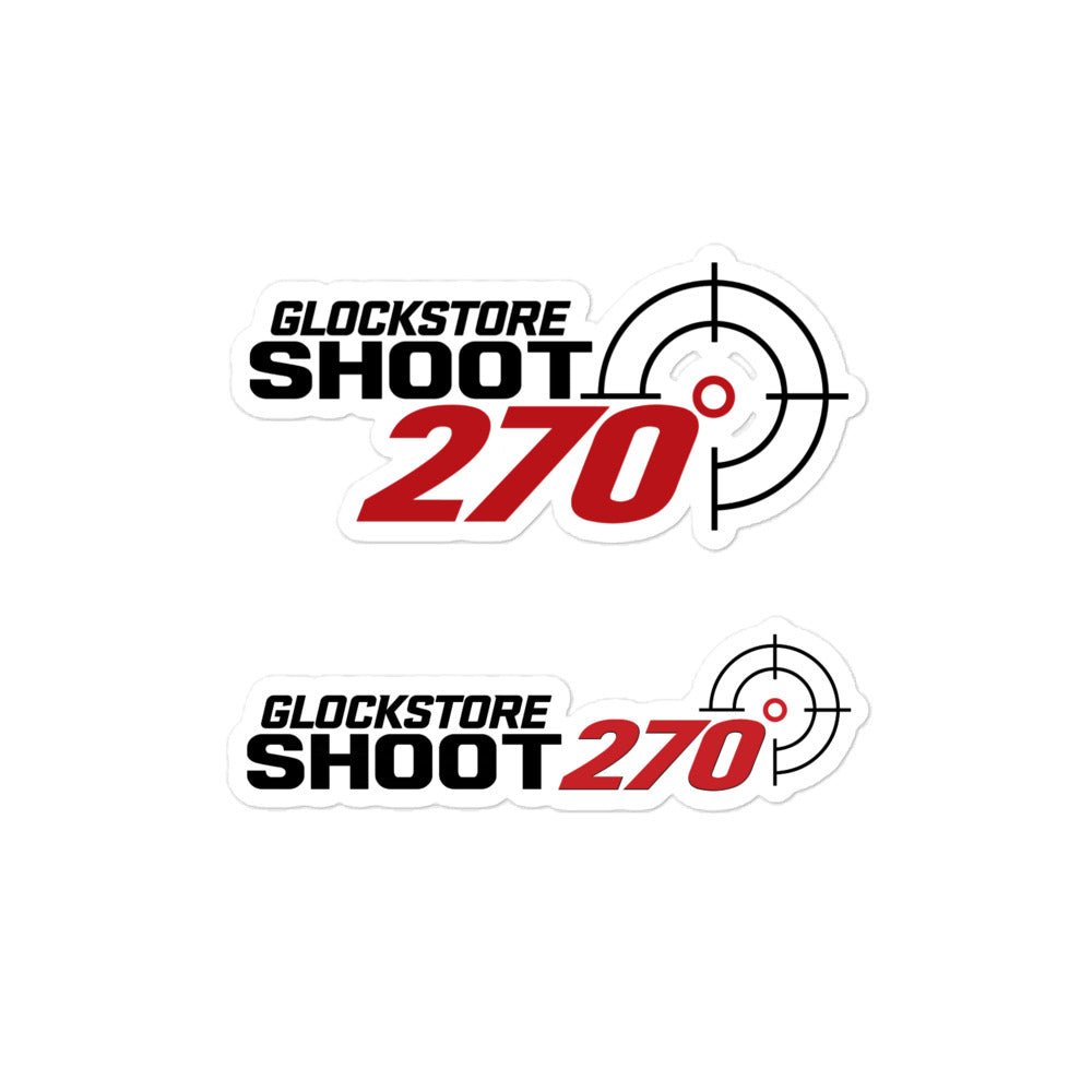 Any item can be exciting with a fun sticker! Let people know that you train at the world's best indoor shooting range, GlockStore's Shoot270º with these durable vinyl stickers. Both stacked and horizontal logo stickers are included.